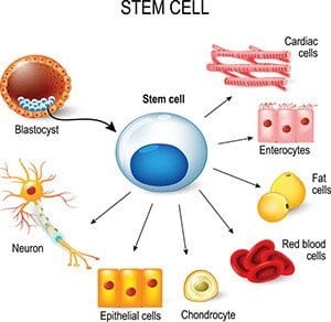 Stem cells differentiate into smooth muscle cells, neurons, endothelial cells and other types of varying cells. Stem cells by definition have the capability of self-renewal, meaning that they can make copies of themselves for an indefinite period, and differentiate into a variety of phenotypes. Stem cells represent great promise for regenerative medicine.” Stem cells can be categorized as either embryonic stem cells (ESCs) or adult stem cells (ASCs). Mesenchymal stem cells (MSCs) are adult stem cells which can be isolated from human and animal sources. The word “Stem Cells” more correctly known as “Mesenchymal Stem Cells” (MSCs) were termed MSCs secondary to their innate ability to duplicate while maintaining the attribute of multi-potential lineage