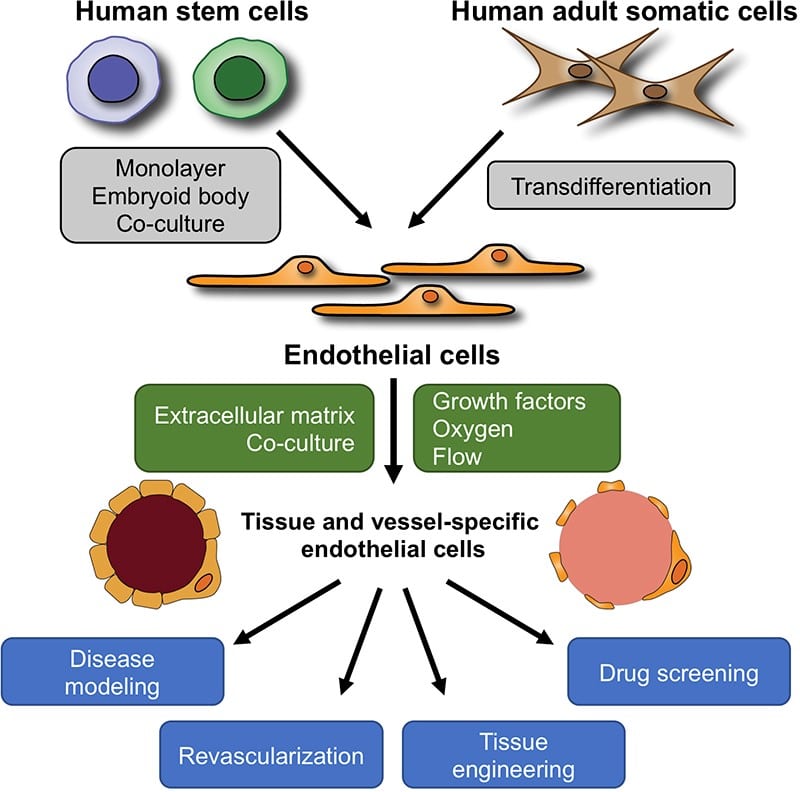 Microvesicles, an important EV, may “change functional target cells by delivering intracellular proteins.” For example, MVs released from endothelial cells can promote the regeneration through transfer of growth factors and their activators. MSC-derived EVs (MSC-EVs)-based stem cell therapies are easier to manage and safer “due to their inability to directly form tumors.”