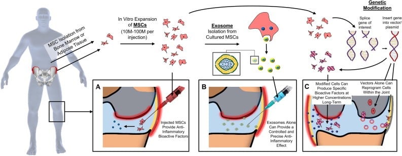 Exosomes Therapy can utilize varying types of stem cells including MSCs. Exosomes may also treat erectile dysfunction by supporting penile tissue through paracrine or hormone effects such as the “release of repair cytokines triggering endogenous mechanisms of regeneration separate from the transdifferentiating of stem cells into different cell types.” Furthermore, MSCs do not necessarily need to be engrafted within tissue to create a functional and structural response to the therapy administered.