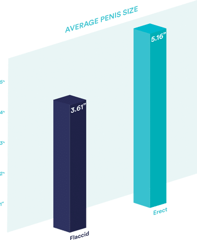 This global analysis of studies discovered that a penis measures 3.61 inches when it is flaccid and 5.16 inches when erect. When flaccid, girth is 3.66 inches; when erect, it is 4.59 inches.